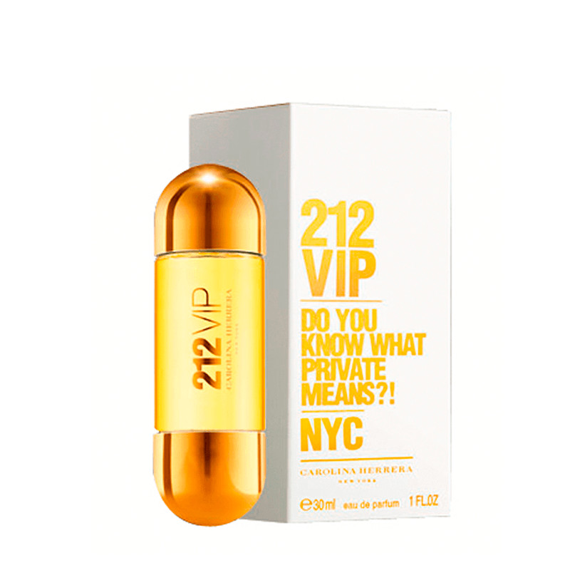 Su ciudad favorita: ¡Nueva York!. Su estilo: siempre en movimiento y conectada. Su diversión: una fiesta con amigos. Su lema: No es lo que tienes, es lo que eres. Una nueva y lujosa interpretación del icónico diseño 212 en color dorado, deslumbrante, con curvas femeninas. El último detalle: su cierre magnético. Un Eau de Parfum que combina elegancia y estilo. La fragancia 212 VIP es un Eau de parfum gustativo con notas florales.
