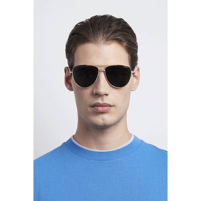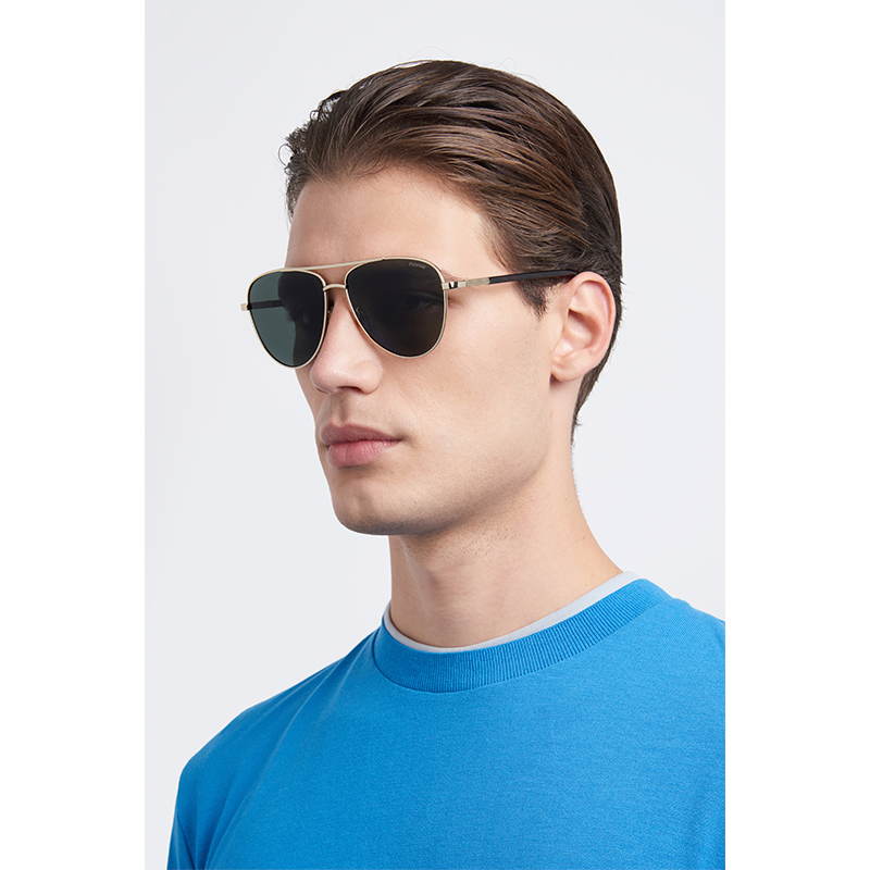 Estas gafas de sol de hombre son de metal reciclado a partir de fuentes reutilizables. Las define una combinación original de plástico y metal, con un grabado al láser cerca de las bisagras. El toque icónico de Polaroid de color en contraste en los terminales es un must naturalmente. Apoyada en almohadillas ajustables confortables, la montura en su línea superior se completa con un doble puente y en su parte inferior se redondea.