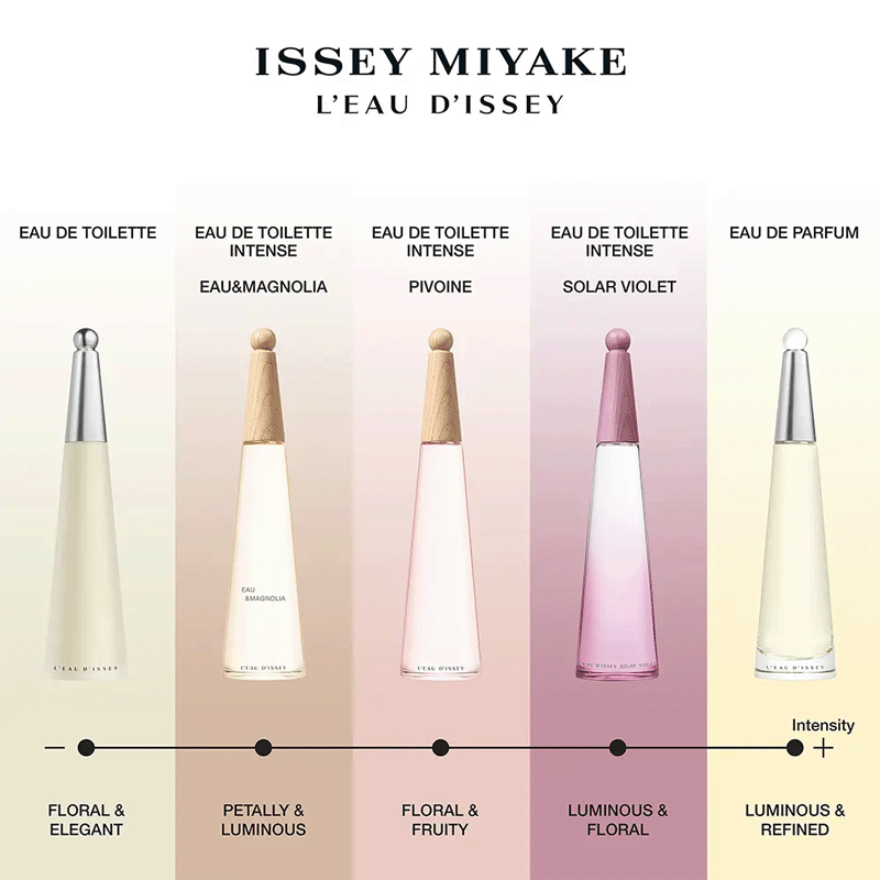 Luminosa y floral: el agua pura se mezcla con la delicada violeta El agua se encuentra con la materia y surge un contraste de elementos que da origen a L'Eau d'Issey Solar Violet, una eau de toilette intensa nacida bajo el sol.