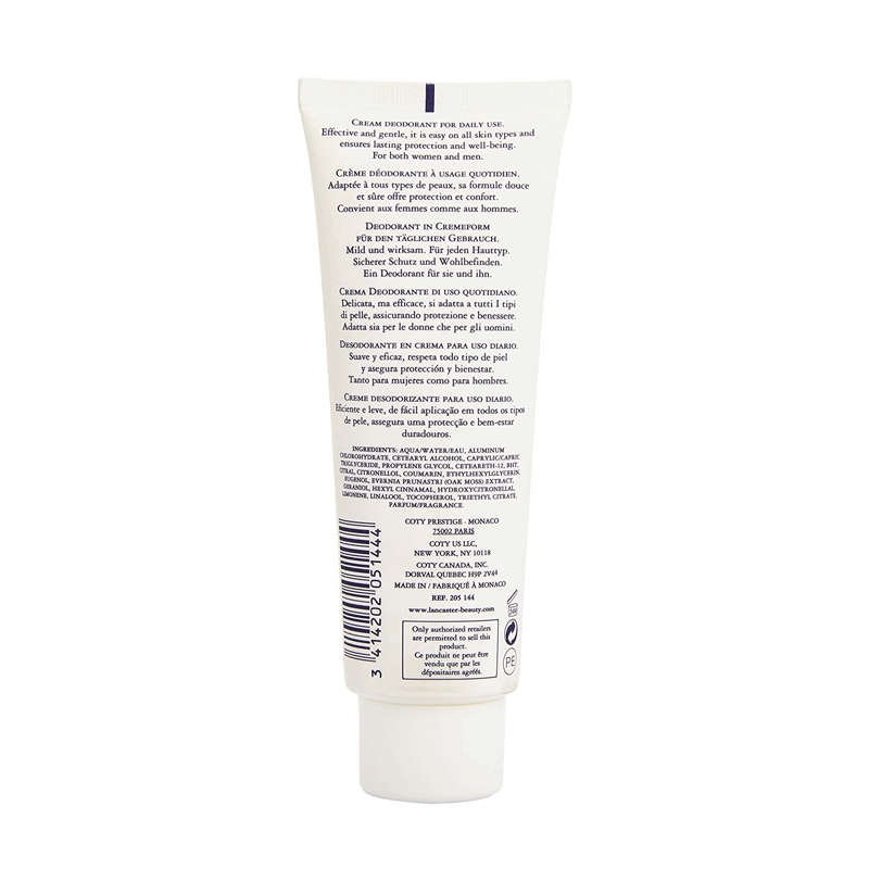 De textura suave, respeta todo tipo de pieles. Su perfume evoca a la fragancia Eau de Lancaster y proporciona un frescor duradero.