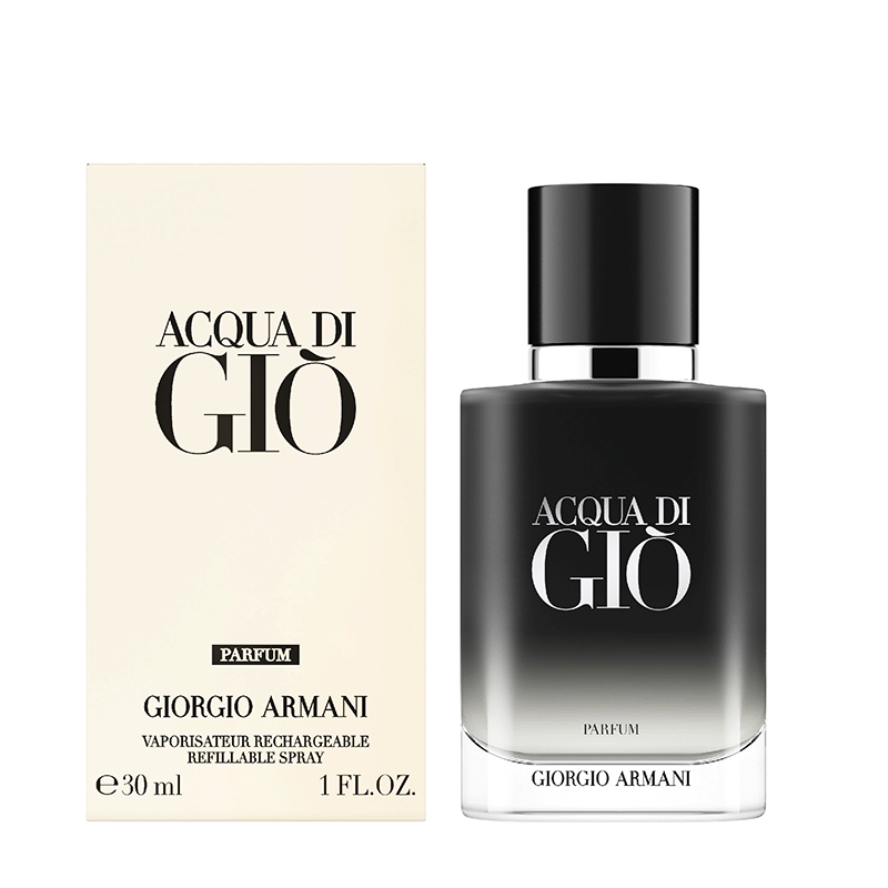 Acqua Di Giò Parfum aporta un frescor intenso a la colección. Sus notas de salida combinan un corazón de bergamota, jengibre y la intensidad de las notas marinas; su corazón fusiona el corazón de geranio bourbon, la esencia de romero y el corazón de salvia sclarea, mientras que un fondo de maderas vibrantes, esencia de pachuli e incienso crea un halo de misterio. Esta fragancia potente se distingue por sus notas de incienso, que aportan una intensidad incandescente a las emblemáticas notas marinas de Acqua di Giò. El diseño del frasco, con su forma elegante y masculina creada en tonos de negro degradado, evoca una nueva excelencia. Como parte del compromiso de Giorgio Armani por un futuro mejor, la fragancia puede recargarse en todos los formatos. El diseño ecosostenible de ACQUA DI DIÒ PARFUM no se limita a su frasco recargable, sino que abarca también unos ingredientes de origen natural y sostenible.