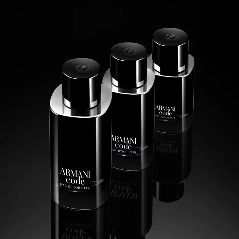 ARMANI CODE EAU DE TOILETTE, una fragancia emblemática repleta de contrastes, se presenta ahora en un nuevo frasco llamativo.