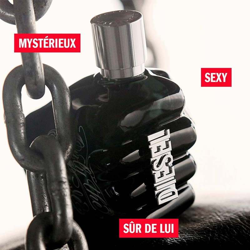 El frasco emblemático está revestido de negro y magnificado con un tatuaje blanco, como símbolo de los hombres misteriosos y rebeldes que se atreven a explorar lo desconocido.